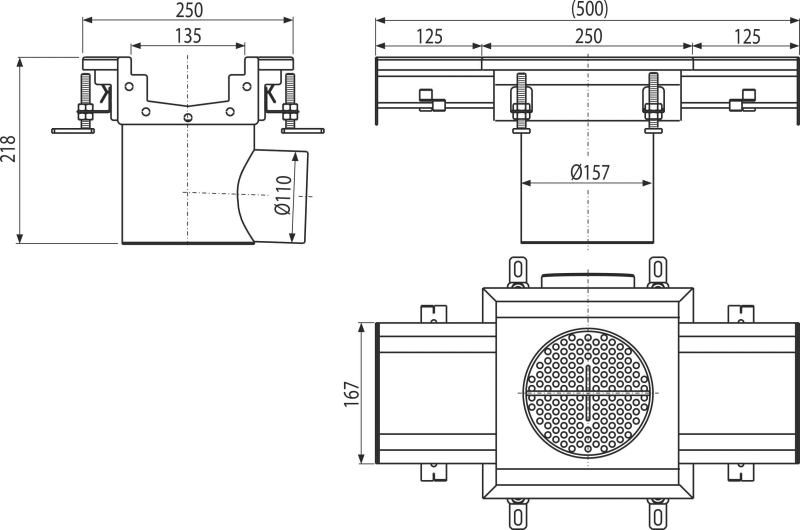Industrijski točkasti slivnik sa ulazima 250×250-135, inox AISI 316L