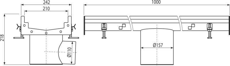 - Cijeli sustav je čvrsto usidren u beton pomoću lako podesivih nogu i bočnih sidara