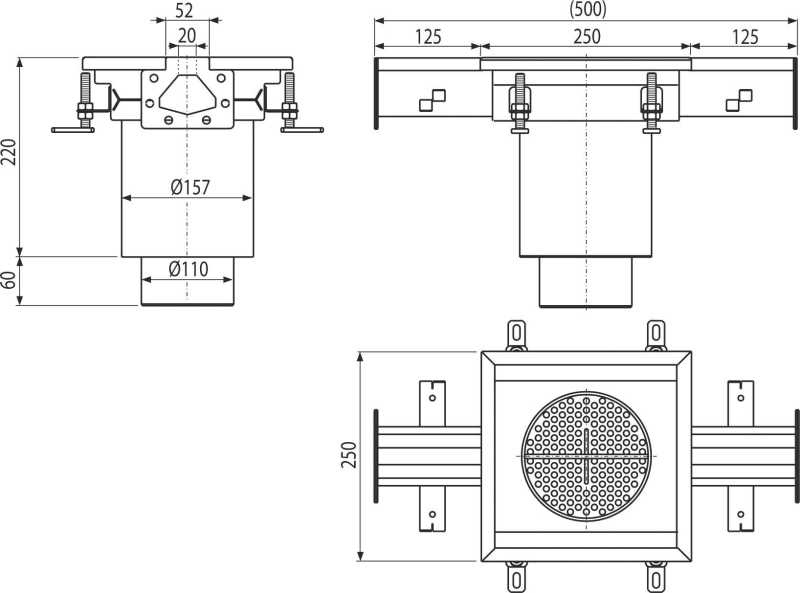 - Materijal slivnika: nehrđajući čelik 1,5 mm, DIN 1.4404
