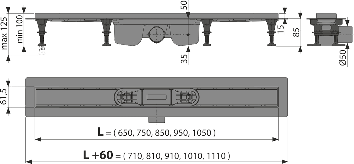 Tuš kanalica s rubom za perforirane rešetke ili ugradnju pločica