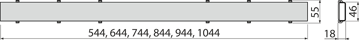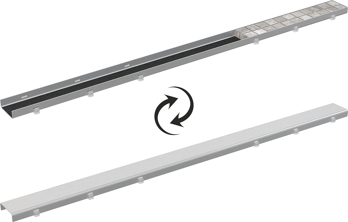- Dizajn rešetke određen je dvostranom rešetkom OPTION - s jedne strane puni nehrđajući čelik, a s druge strane mogućnost umetanja pločica ili vodootpornog drveta do debljine 12 mm