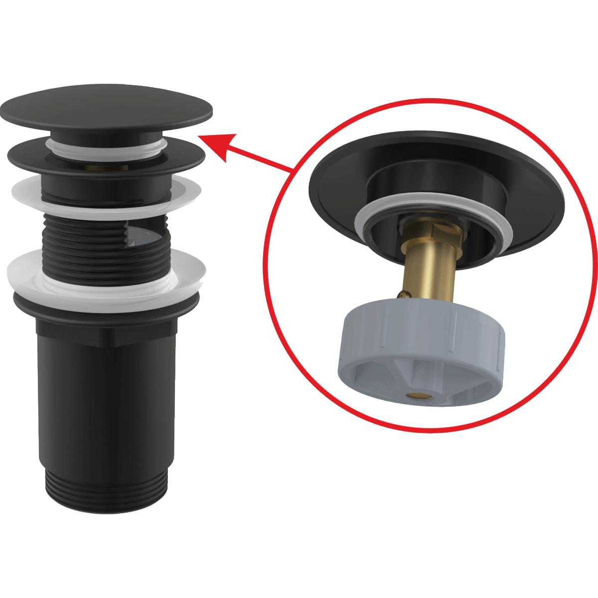 Gornji dio sifona za umivaonik CLICK/CLACK 5/4" metalni sa preljevom, veliki čep crna-mat