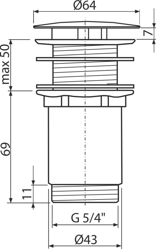 Gornji dio sifona za umivaonik 5/4" metalni, veliki čep bez mogucnosti zatvaranja, za umivaonike bez preljva, bijela-sjaj