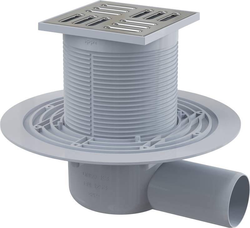 Podni slivnik 105×105/50 mm bočni, nehrđajuća mrežica, zatvarač neugodnog mirisa SMART