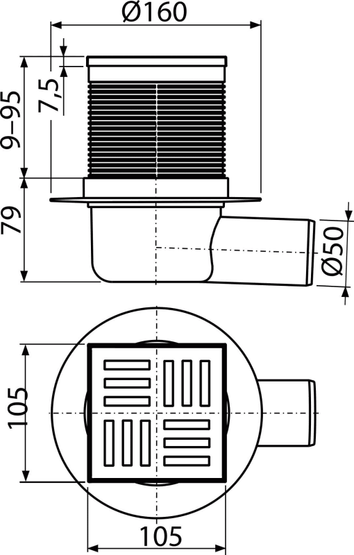 | APV0300 | Drain throat, grid 105×105 mm steel |