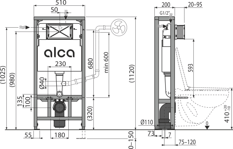 - Za montažu visećeg WC-a s razmakom priključka od 180 mm ili 230 mm