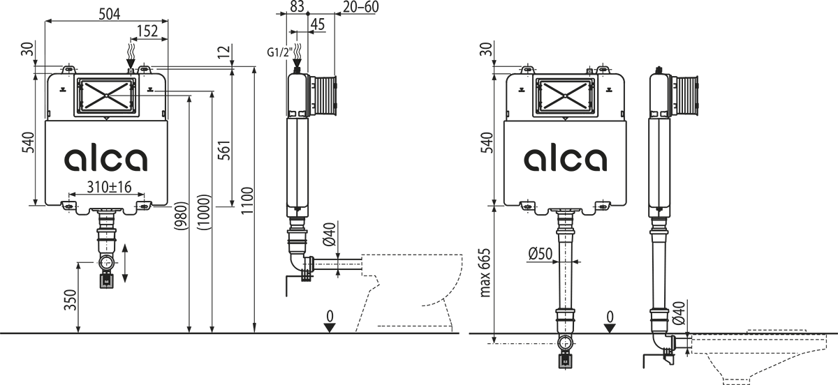 | Priključak za vodu sa stražnje strane ili odozgo preko montažnih otvora | G1/2 " |