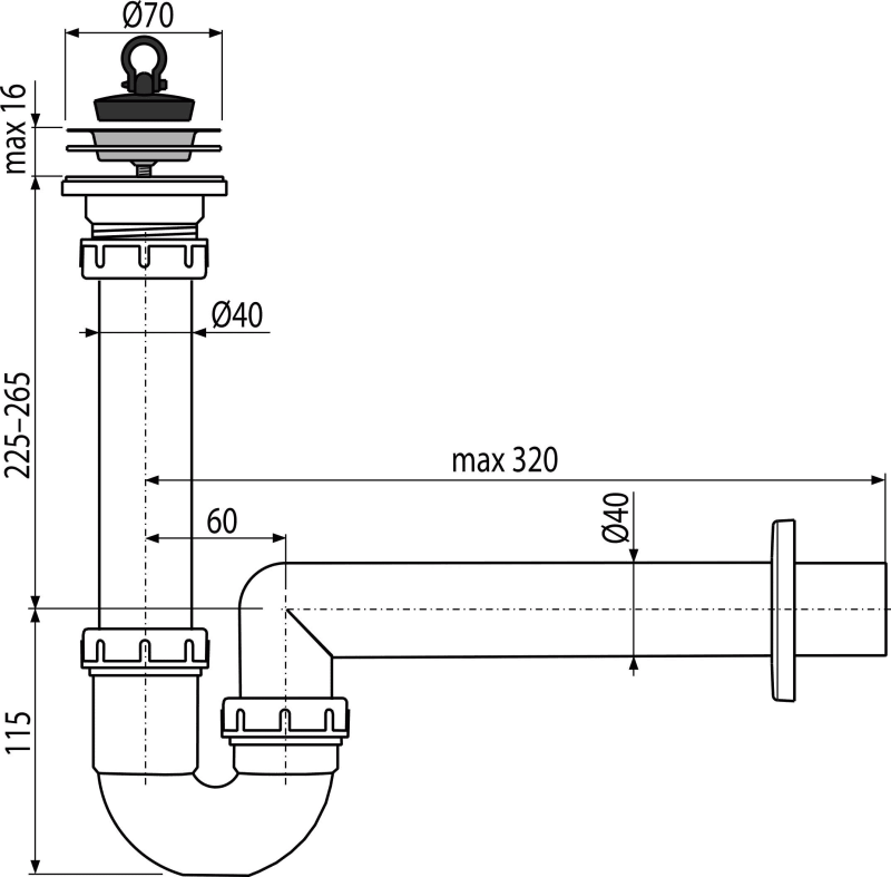 - Priključak na odvodnu cijev Ø40 mm