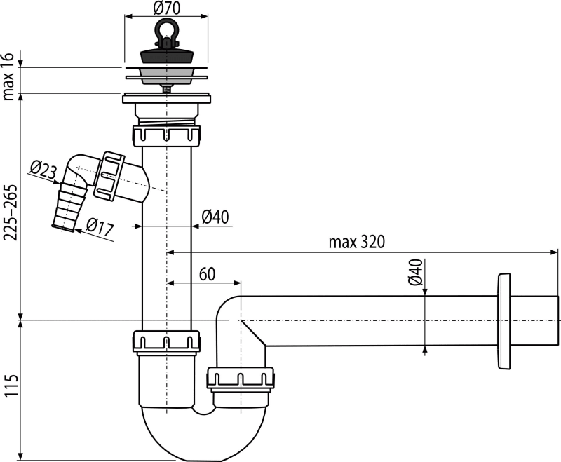 - Priključak na odvodnu cijev Ø40 mm