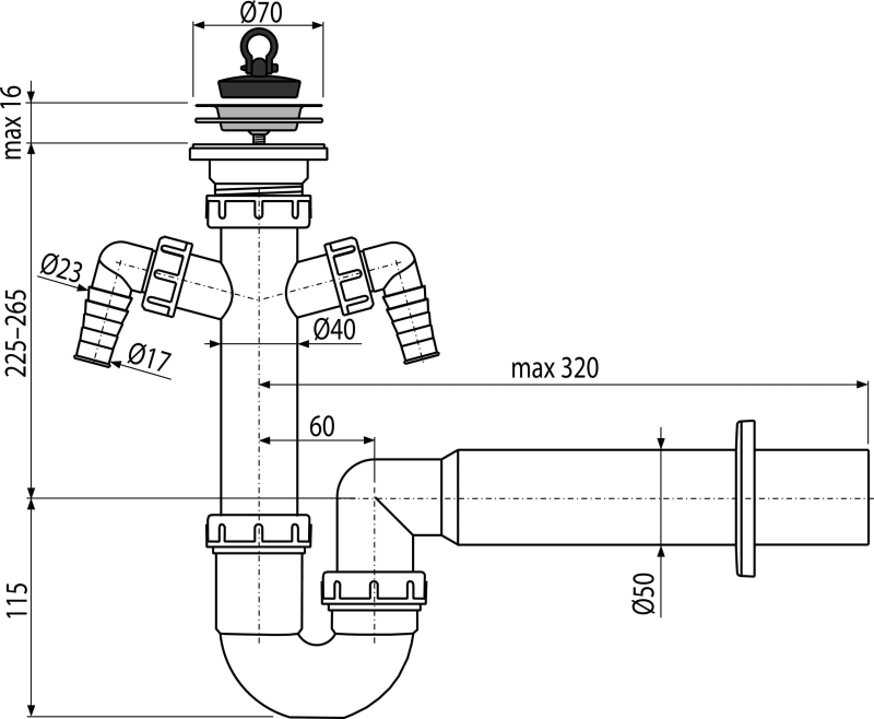 - Priključak na odvodnu cijev Ø50 mm