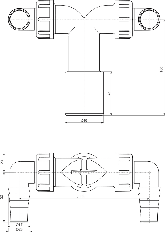 Koljeno račva DN 40/32 / 17–23 s klapnom