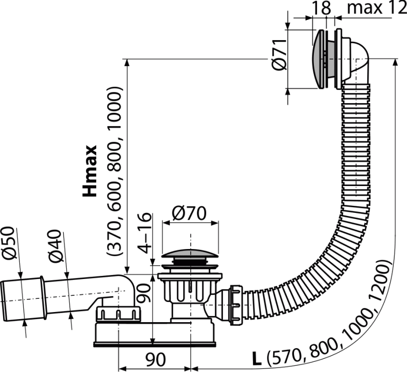 - Za kade s otvorom odvoda Ø52 mm