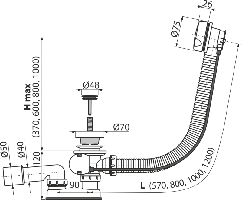 - Duljina sifona za kadu 57 cm