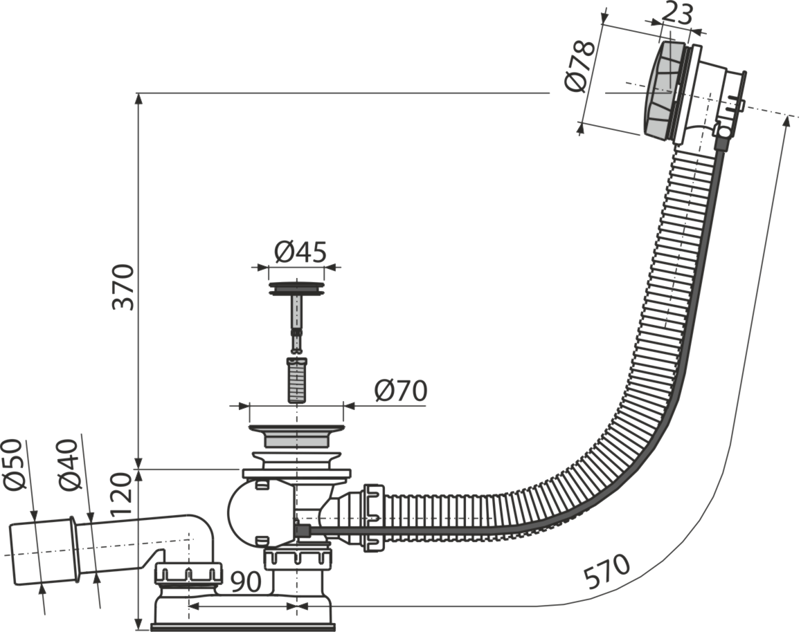 Sifon za kadu automatski, GUN METAL-brušena prostirka