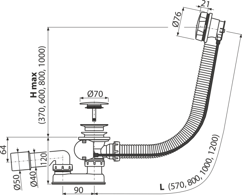 - Zatvaranje odvoda pomoću Bowden kontrole