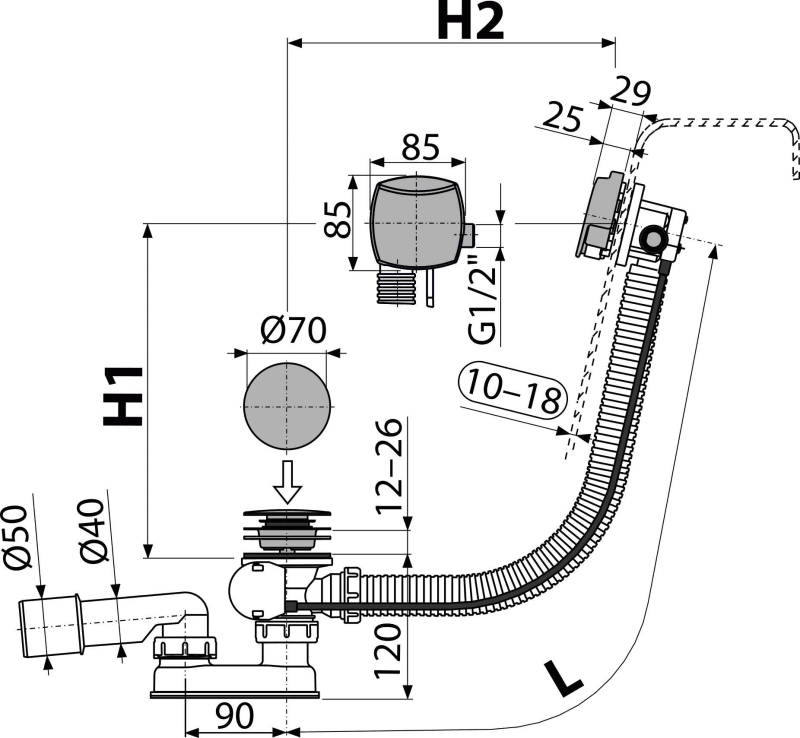 Sifon za kade automat sa punjenjem preljevom za kade sa debelim stjenkama, krom
