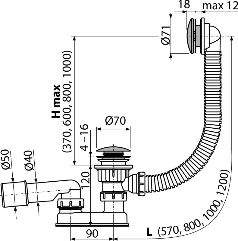 S1425-BLACK-NDWaste outlet CLICK/CLACK 6/4"metal BLACK