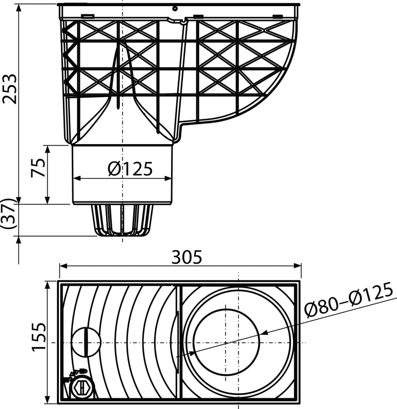 - Tijelo odvoda s direktnim odvodom Ø125 mm
