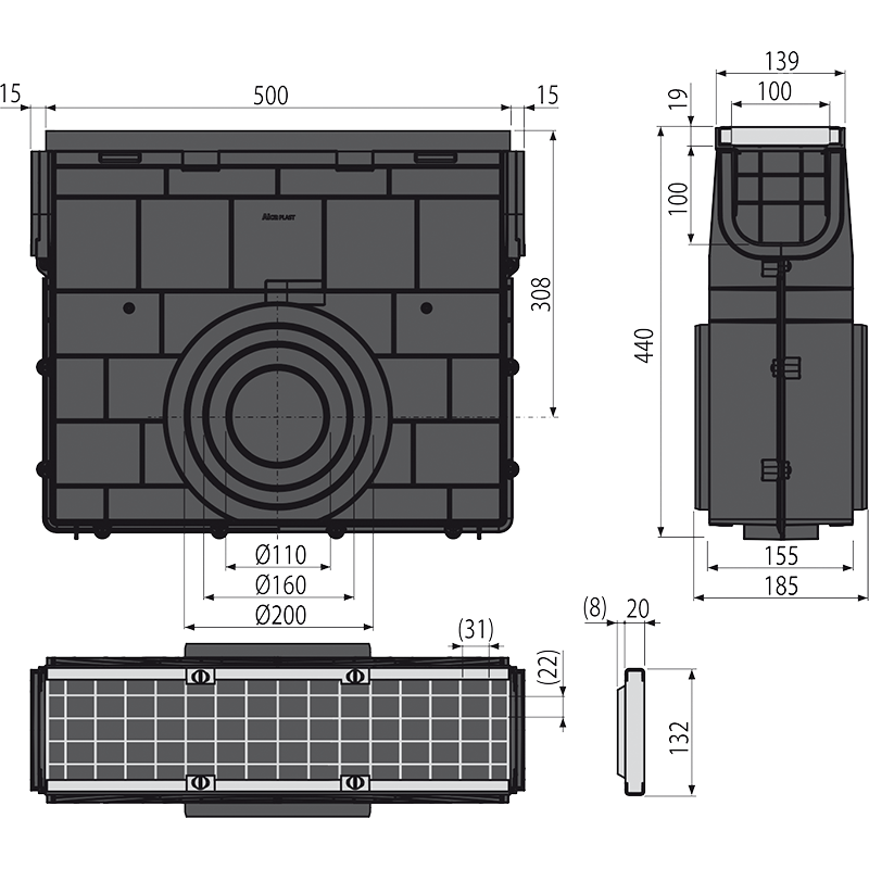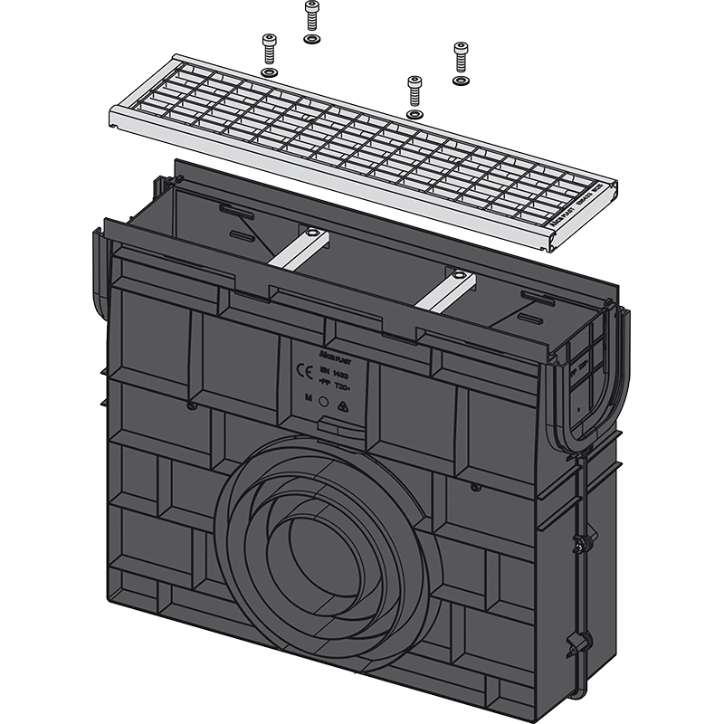 - Pocinčana mrežasta rešetka – pričvršćena u kanalici pomoću četiri vijka od nehrđajućeg čelika, veličina oka 22×31 mm