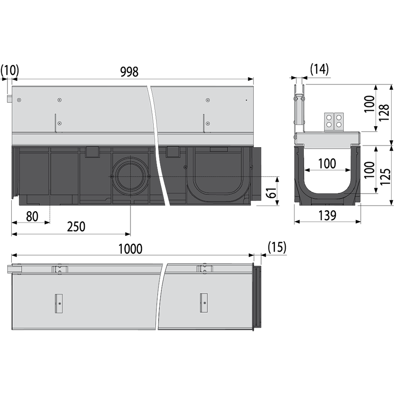 | AVZ101 | Outdoor drain channel 100 mm without frame |