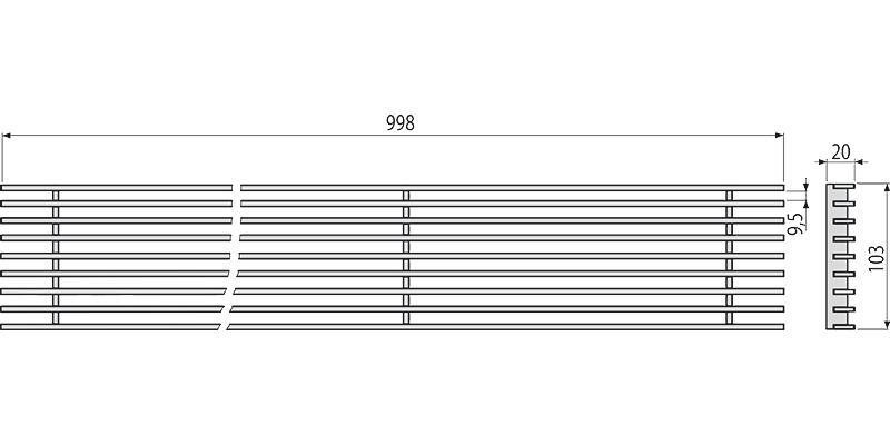 - Materijal rešetke: nehrđajući čelik AISI 304, DIN 1.4301