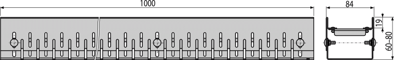 - Tijelo kanalice podesivo po visini 60–80 mm