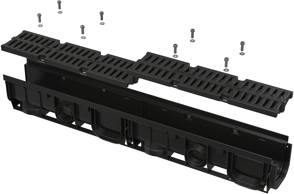 - Plastična rešetka - pričvršćena u kanalici pomoću osam vijaka od nehrđajućeg čelika, širina ulaznog utora 14 mm