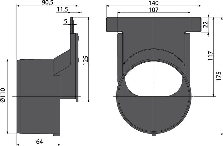 - Koristi se za horizontalni spoj kanalice na sustav odvodnje Ø110 mm