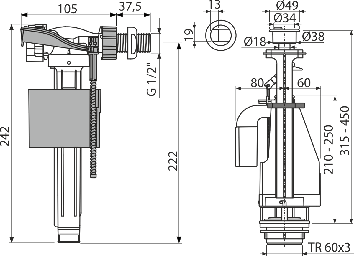 - Dizajn vam omogućuje podešavanje optimalne visine ventila prema visini vodokotlića