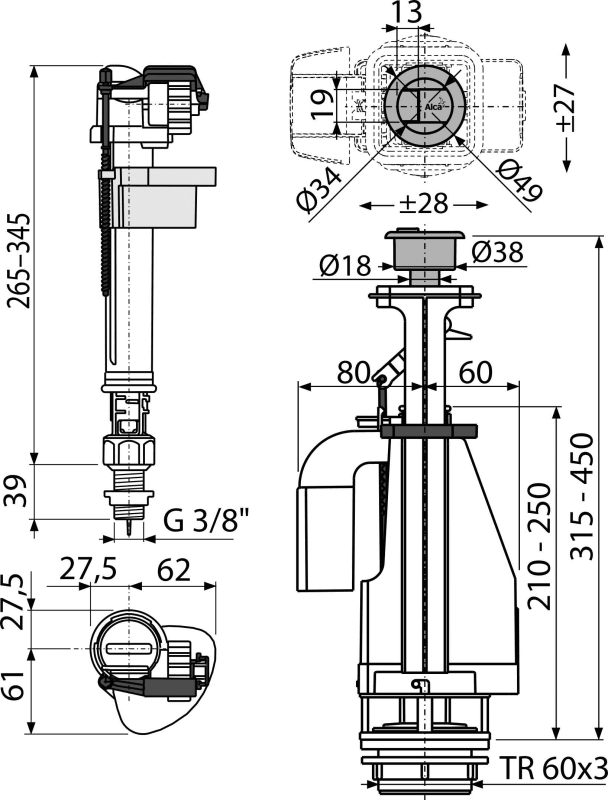 - Dizajn vam omogućuje podešavanje optimalne visine ventila prema visini vodokotlića
