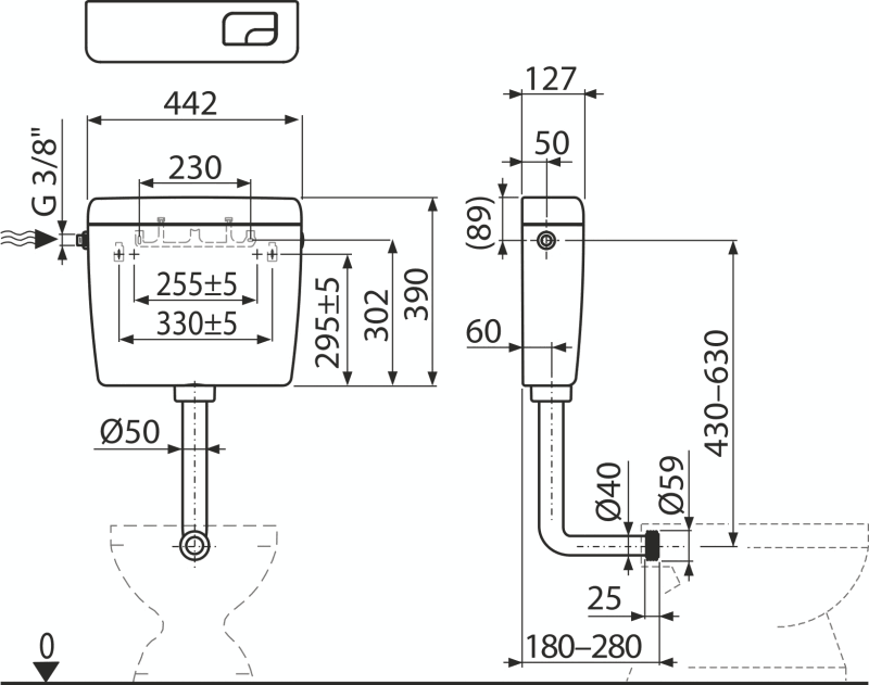 • Set za ispiranje za nisko postavljeni vodokotlić (mala, velika tipka)